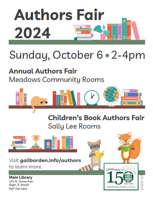 I plan to attend an author fair at the Gail Borden Public Library in Elgin, IL on Sunday 10/6/2024 from 2-4pm. Address: 270 N. Grove Avenue, Elgin. If you get a chance to stop by, it would be great to catch up with what’s going on.